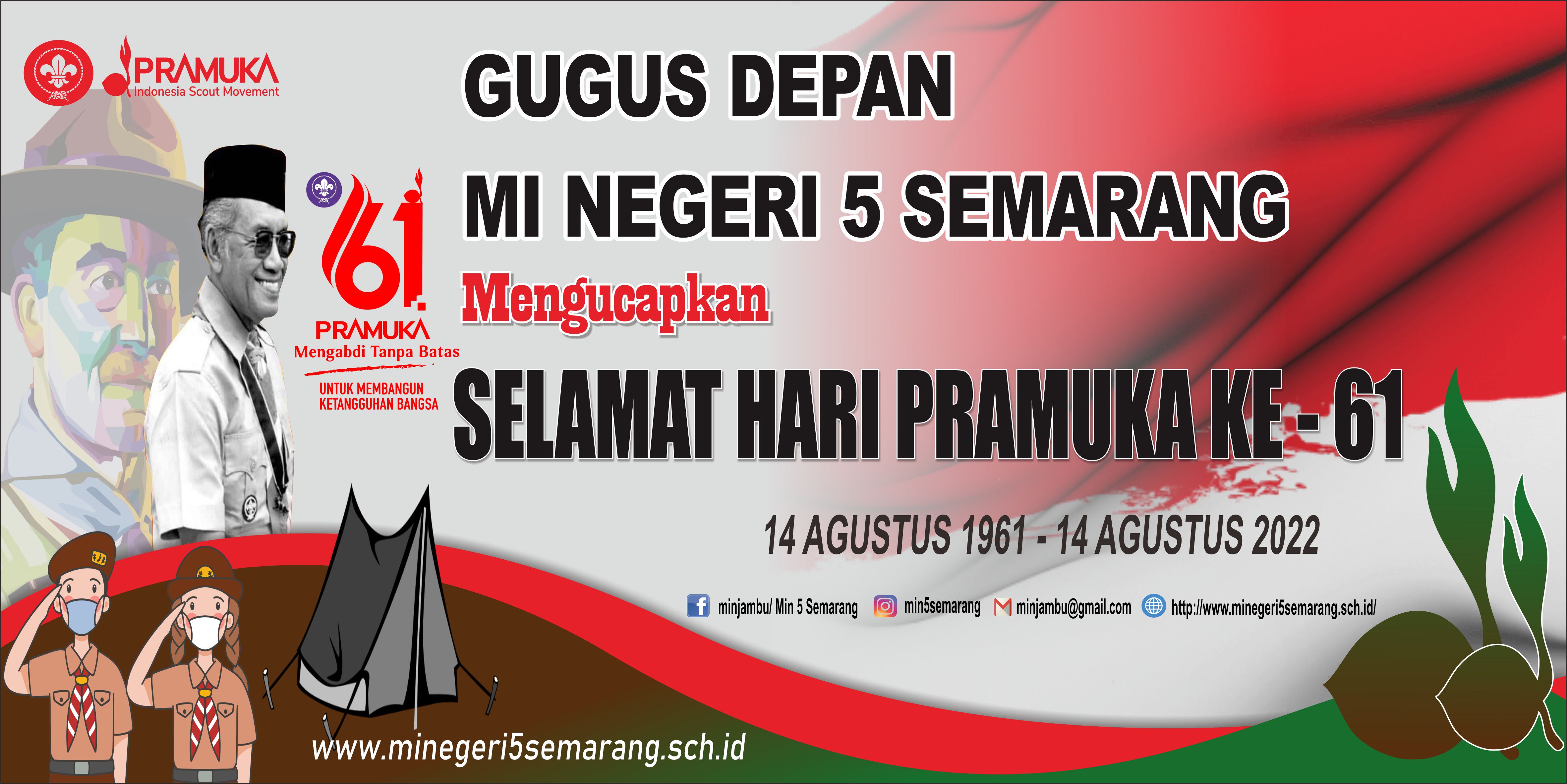 Gugus Depan MI Negeri 5 Semarang mengucapkan Selamat Hari Pramuka ke 61, "Pramuka Mengabdi Tanpa Batas untuk Membangun Ketangguhan Bangsa"