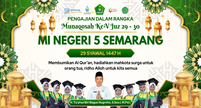 Acara pengajian ditutup dengan doa bersama dan pemberian syahadah (sertifikat) secara simbolis kepada para peserta. Keberhasilan pelaksanaan munaqosah di bulan Syawal ini diharapkan menjadi penyemangat bagi seluruh siswa MIN 5 Semarang untuk terus mencintai dan menghafal Al-Qur'an.(rwr)